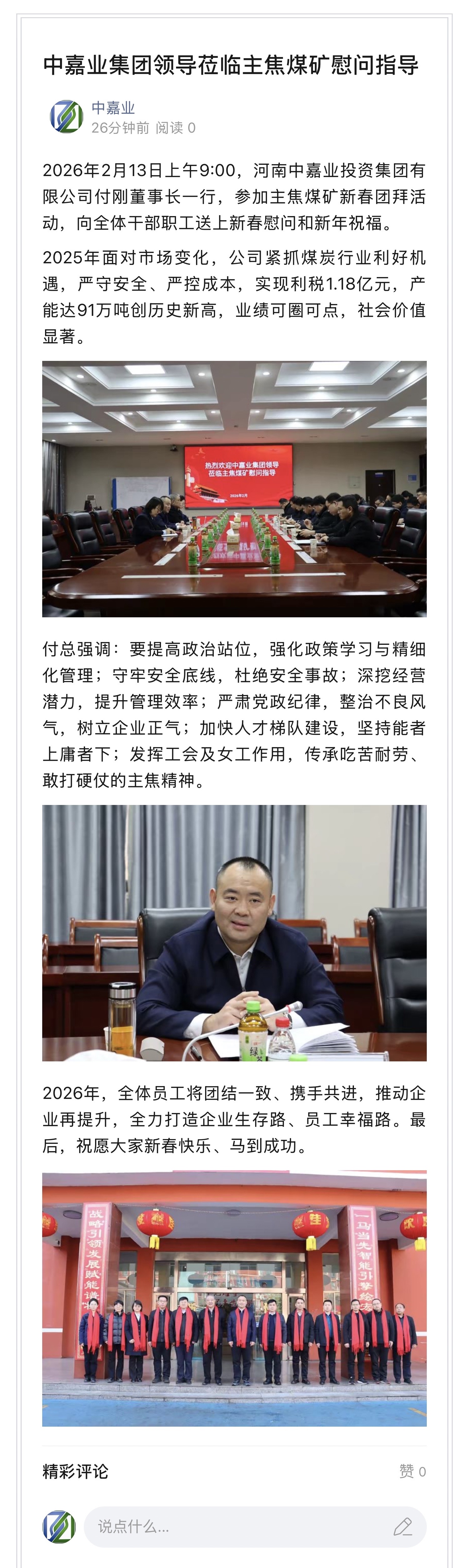 中嘉业集团领导莅临主焦煤矿慰问指导